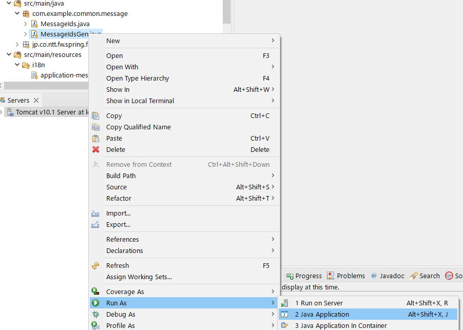 まず空のメッセージID定数クラスを作成する。ここではcom.example.common.message.MessageIdsとする。