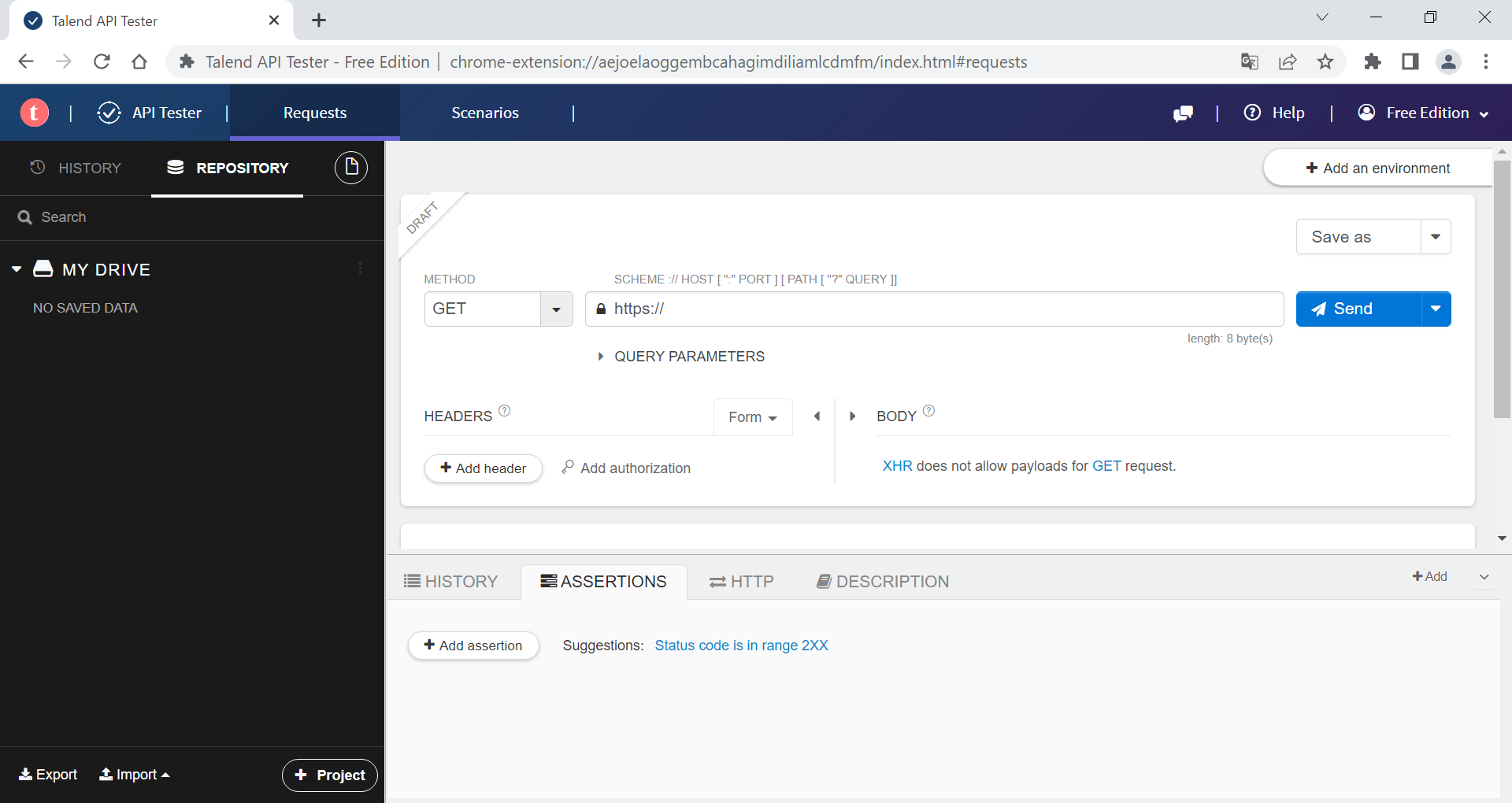 RESTクライアントとして、Chromeの拡張機能である「Talend API Tester」をインストールする。