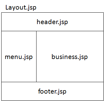よって、Tilesで画面レイアウトを設定した後は、業務に相当するJSPのみ(buisness.jsp)画面毎に作成すればよい。