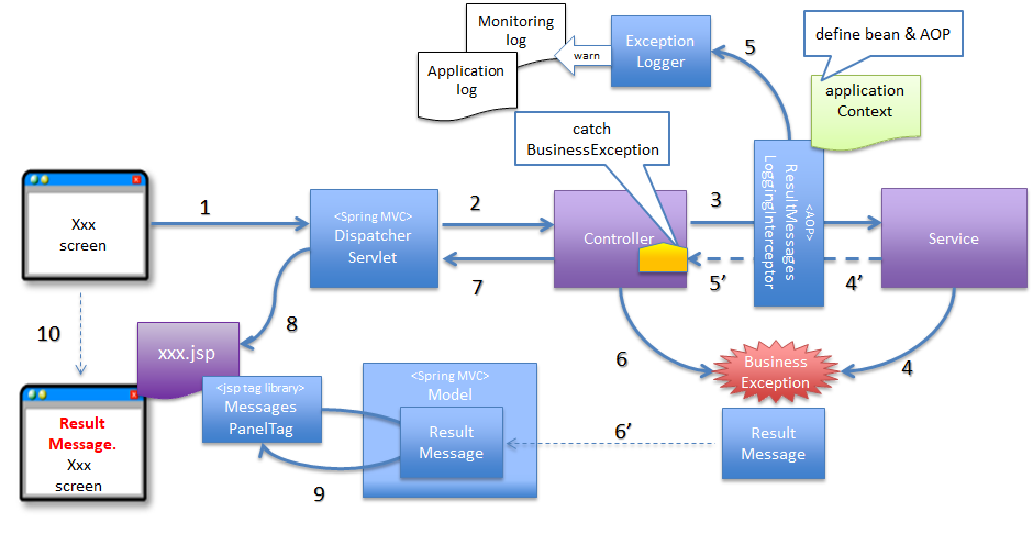 下記に示す例は、デフォルト値から「resultMessagesForExceptionResolver」に変更する場合の、設定&実装例である。