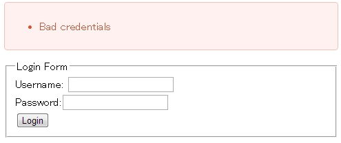 <div class="alert alert-error"><ul><li>Bad credentials</li></ul></div>