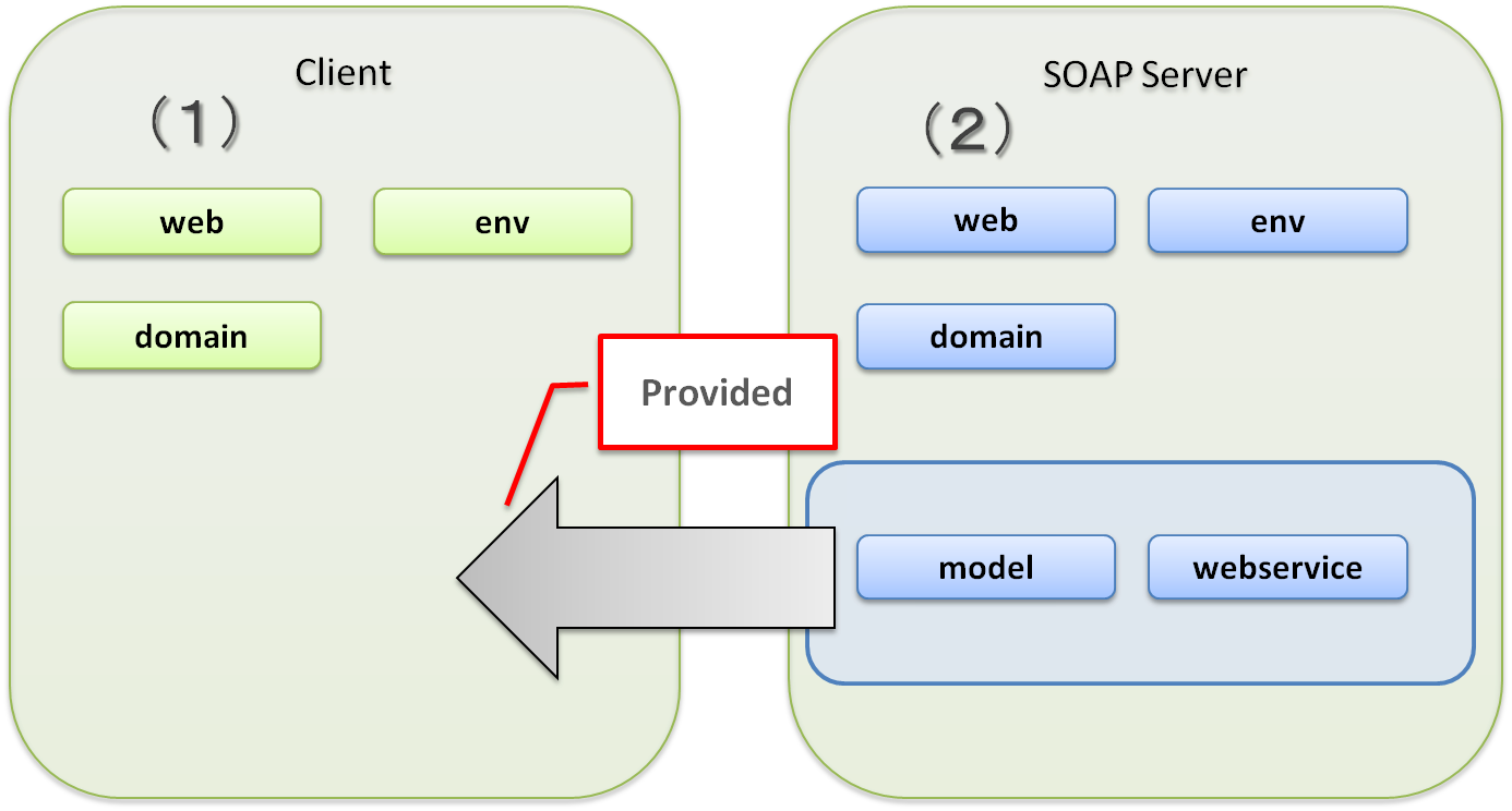 サーバとクライアントの開発が別々で、modelプロジェクトとwebserviceプロジェクトが提供されない場合、もしくはJava以外でSOAPサーバが作成されている場合には、modelプロジェクト内のDomain Objectとwebserviceプロジェクト内のWebサービスインターフェースを自分で作成する必要がある。