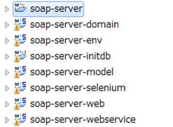 SOAPサーバを作成する場合、従来のマルチプロジェクトに追加してmodelプロジェクトとwebserviceプロジェクトを追加する。