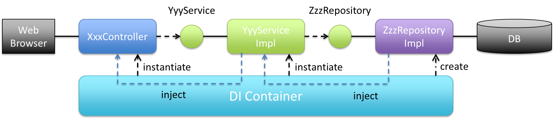MyBatis3やSpring Data JPAを使用する場合は、RepositoryImplの実体を(一部)自動で作成する仕組みが提供されている。