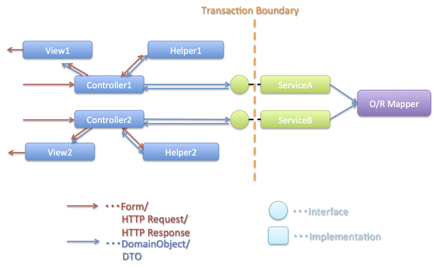 本ガイドラインでは、Serviceのメソッドをトランザクション境界にすることを推奨している。
