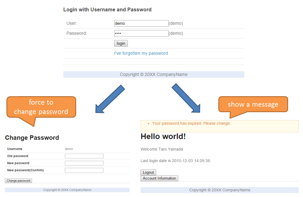 一定期間パスワードを変更していないユーザに対して、認証成功時にパスワードの変更を強制する