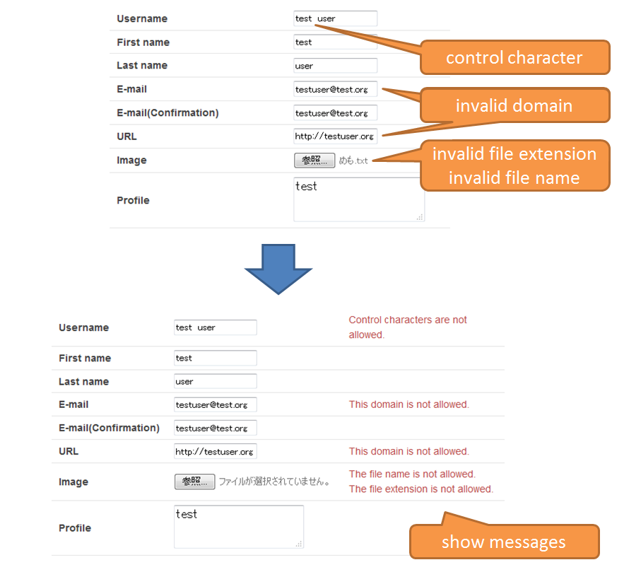 アップロードされるファイル名に対し、アプリケーション全体で共通の禁止文字を設定する |