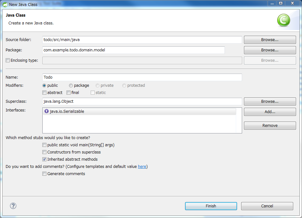 findById, findAll, save, deleteByIdなど)は、JpaRepositoryインタフェースに定義済みであるため、TodoRepositoryにはcountByFinishedメソッドのみ定義すればよい。 |