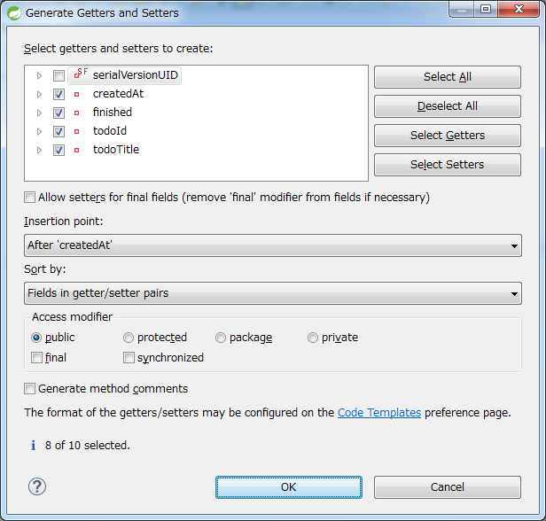 TodoクラスとデータベースのTODOテーブルをマッピングするために、JPAのアノテーションを設定する。