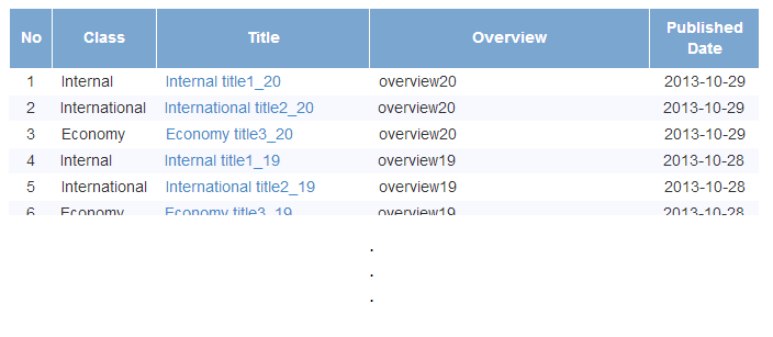 ページ検索処理で検索条件(検索対象のページ位置、取得件数、ソート条件等)を指定して取得したデータを表示する。