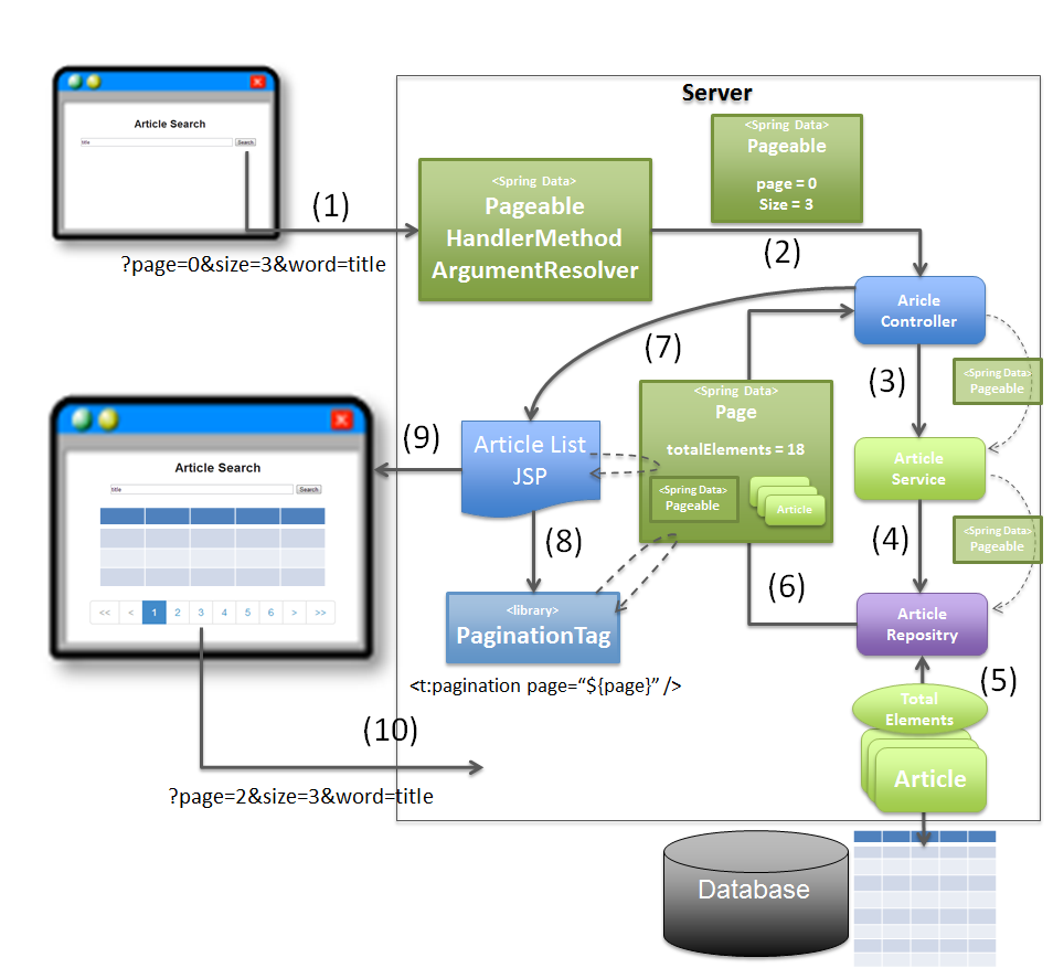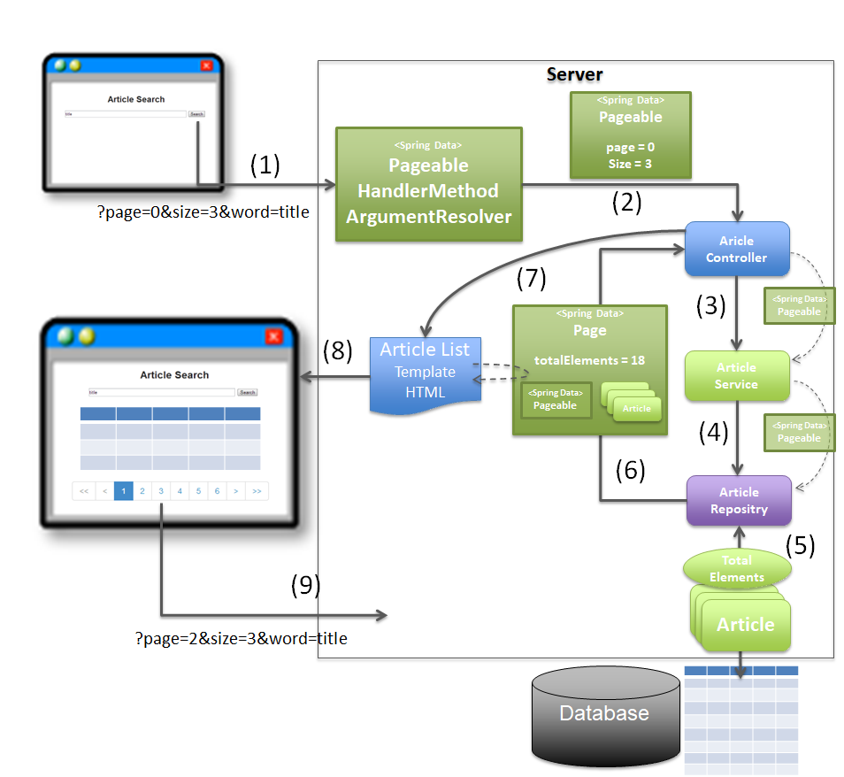 Page<Article> page = articleService.searchArticle(criteria, pageable); // (3)