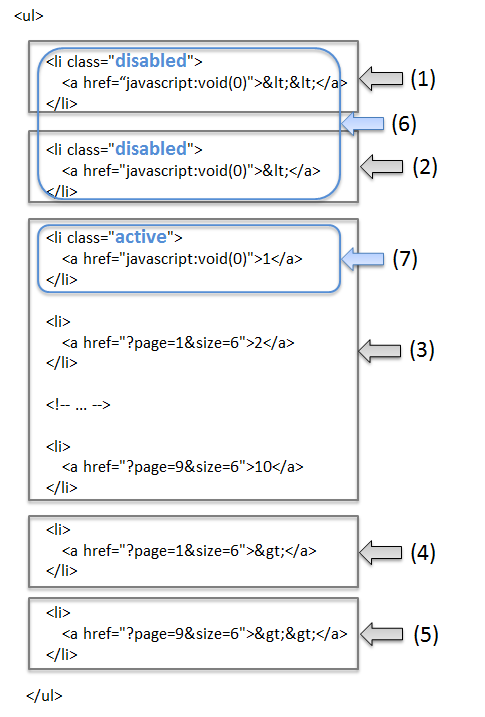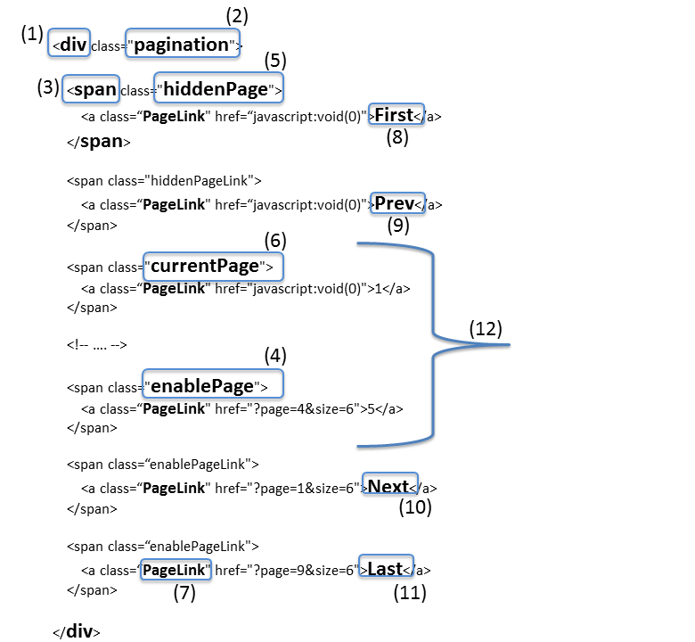 また、各要素の概要及びHTML構造等については、「ページネーションの表示について」を参照されたい。