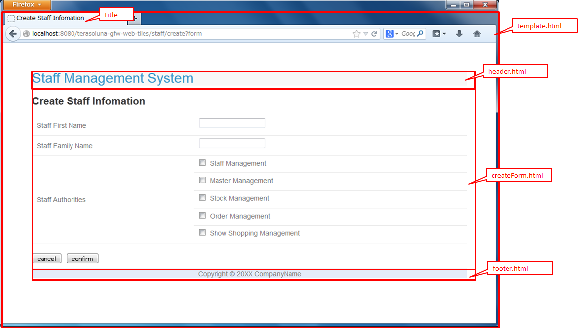 4.13.2.1. Thymeleafのテンプレートレイアウト機能を使用した画面レイアウト